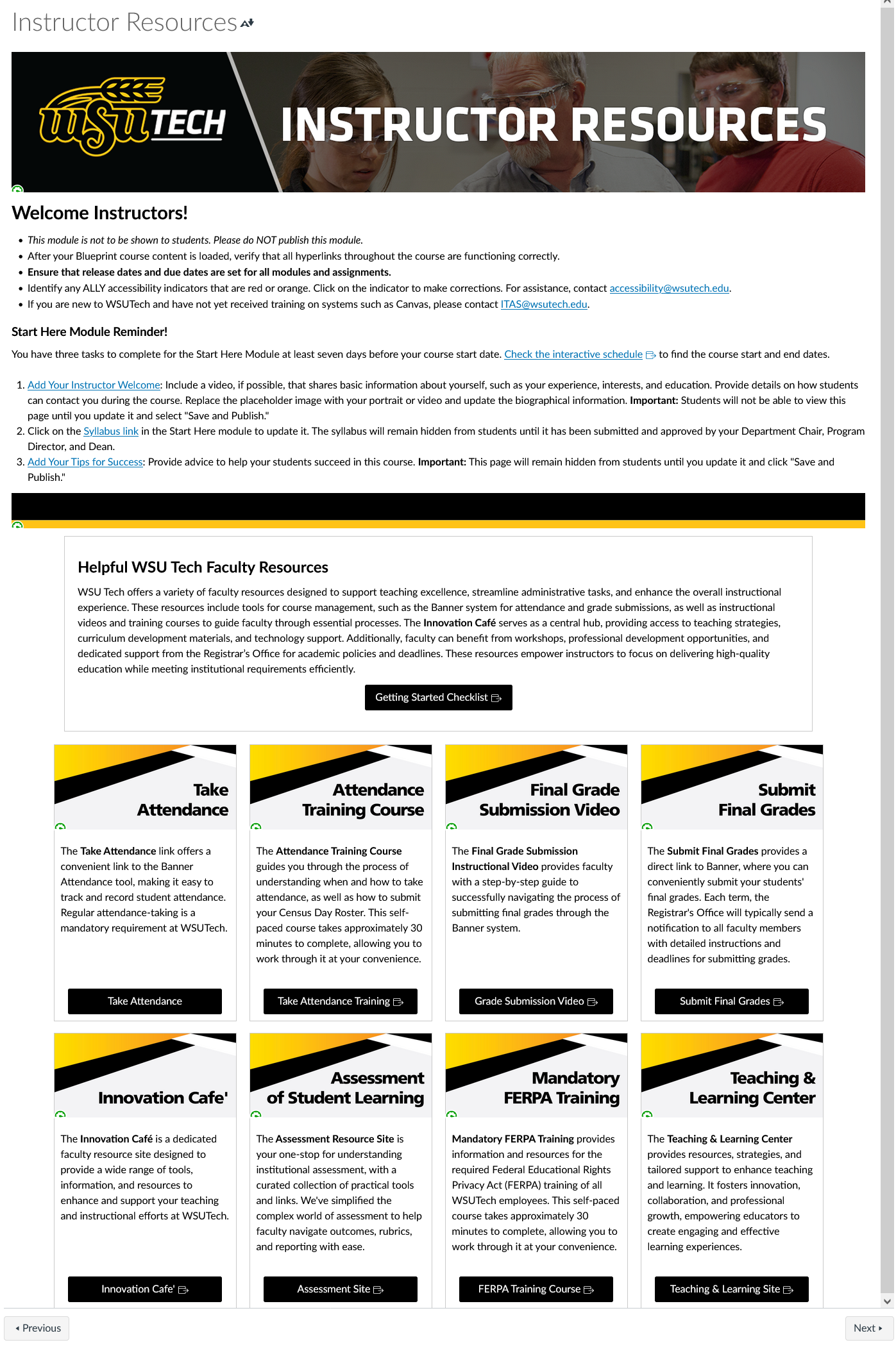 Over the past few months, the ITAS Team has been busy redesigning the Student and Faculty Start Here template pages to make them more intuitive and user friendly. Content is now grouped into cards - similar to the Canvas and Canvas Catalog interface - that include brief descriptions to guide the user. These updates will appear in the Fall 2025 courses. Scroll down to see a preview.