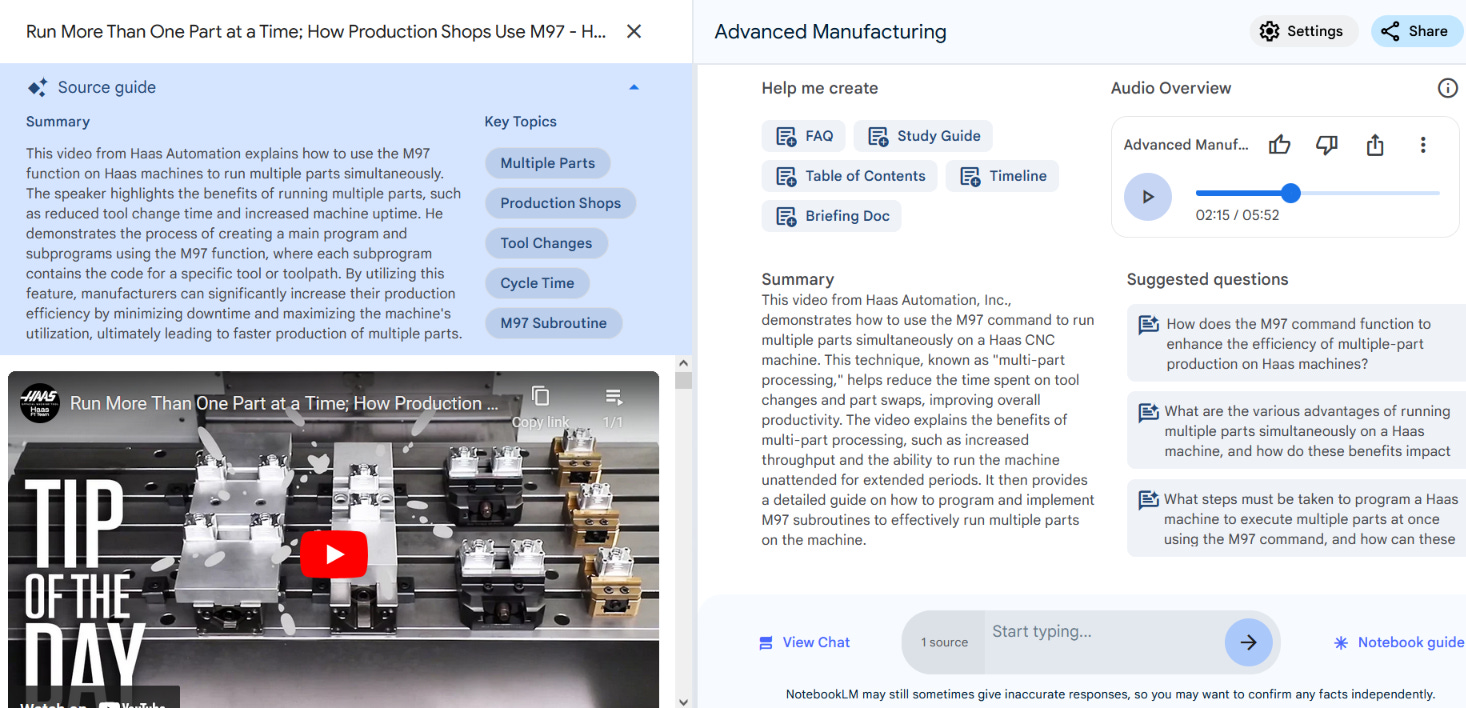 Pro Tip: You can find some starter questions in the “Notebook Guide” that appears after you upload your first sources.