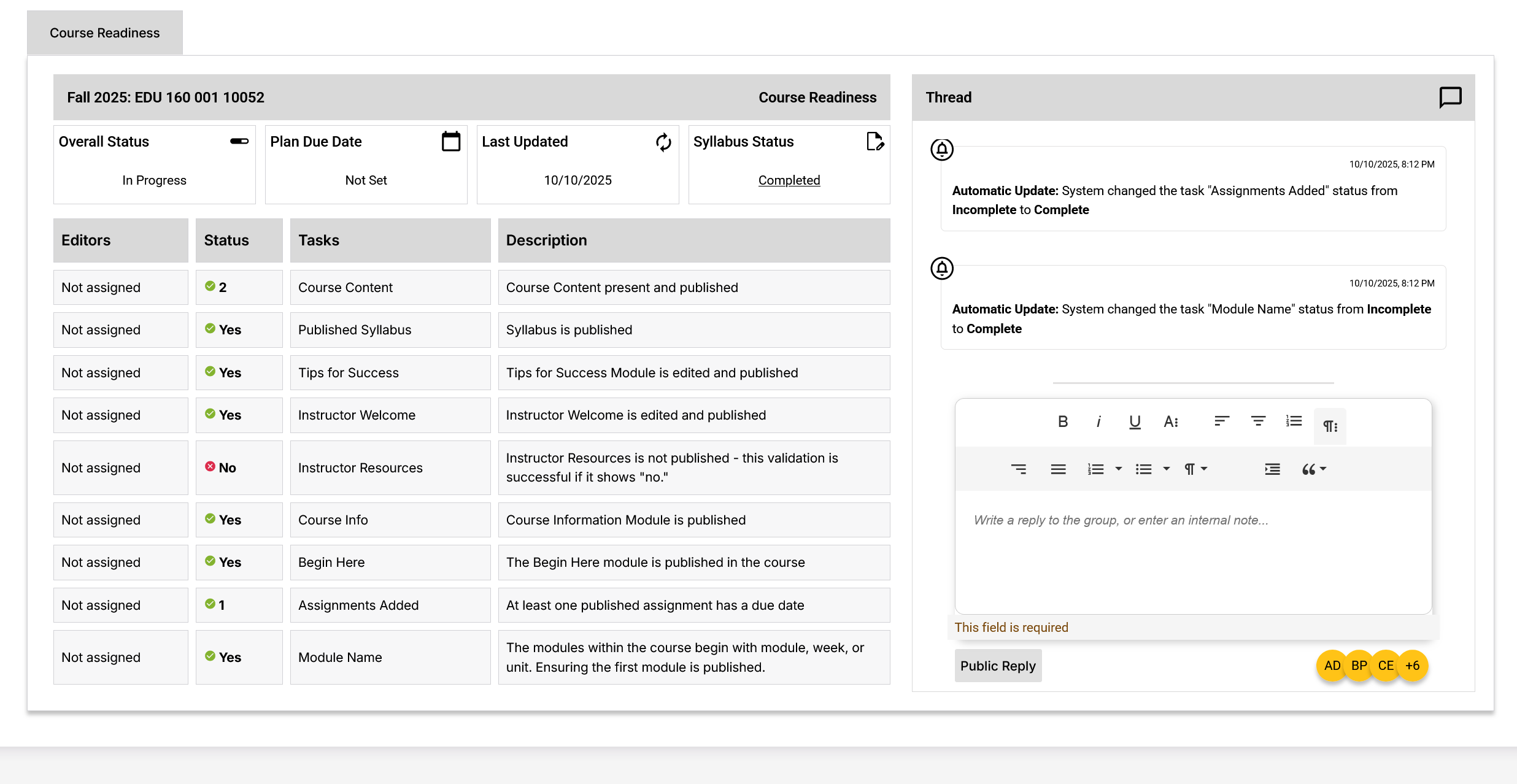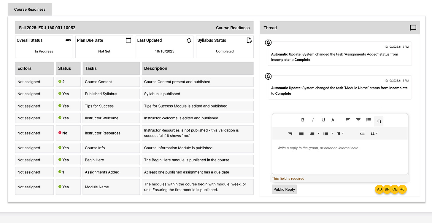 We’re excited to announce Simple Prep, a new feature within the Simple product suite that serves as a centralized course readiness tool for reviewing and supporting course builds in Canvas. This tool will eventually replace the traditional 7-Day Check process. Once implemented across the institution, a Course Readiness link will appear in your course navigation menu, providing details on approximately 11 readiness criteria to review before launch. Keep an eye out for upcoming ITAS Open Labs in December and January to learn more about this powerful new feature.